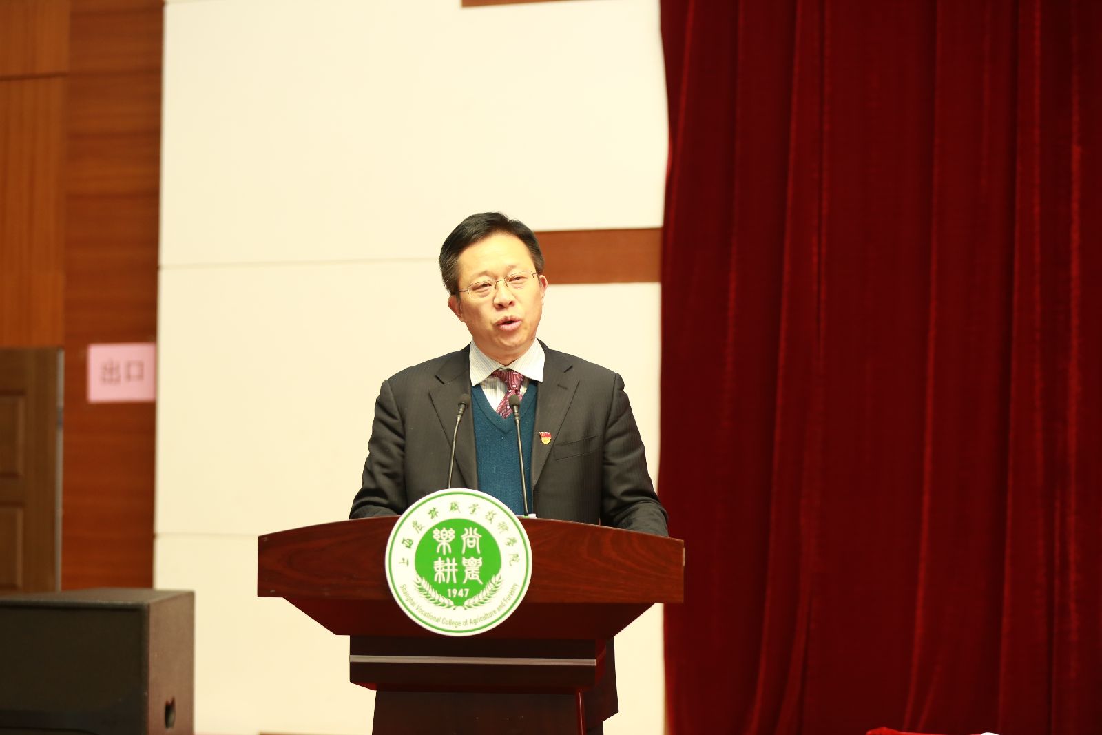 报告号召,在新的历史发展机遇面前,全校各级党组织、全体党员和广大师生员工都要以党的十九大精神为引领,以习近平新时代中国特色社会主义思想为指导,用舍我其谁的担当、责无旁贷的气魄和勤勉踏实的坚韧,埋头苦干、全力以赴、攻坚克难,为把学校建成全国一流农林职业院校而努力奋斗!