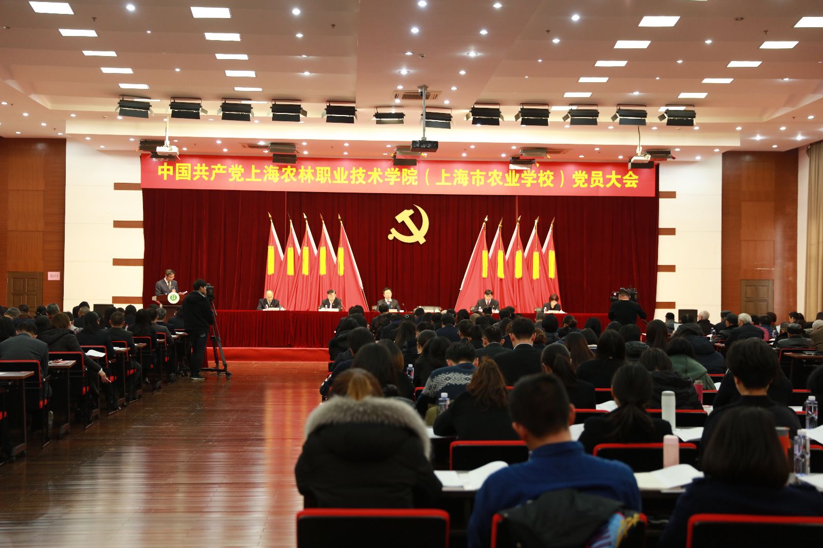 12月28日下午,中国共产党上海农林职业技术学院(上海市农业学校)党员大会在综合楼205报告厅召开。这是学校开启新时代发展新征程的一次十分重要的大会。大会的主题是:不忘初心,牢记使命,高举中国特色社会主义伟大旗帜,全面贯彻党的十九大、全国高校思想政治工作会议和全国教育大会精神,深入学习习近平新时代中国特色社会主义思想,动员广大党员和师生员工科学总结经验,锐意进取,全面加强内涵建设,切实提升人才质量,为建成全国一流农林职业院校而努力奋斗。