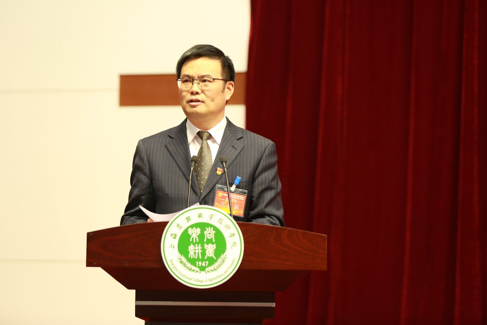 蔡红代表党委向大会作题为《全面加强内涵建设 切实提升人才质量为建成全国一流农林职业院校而努力奋斗》的报告。报告回顾总结了学校过去七年取得的成绩和经验,分析了学校改革发展面临的挑战,明确了未来五年的奋斗目标和任务。