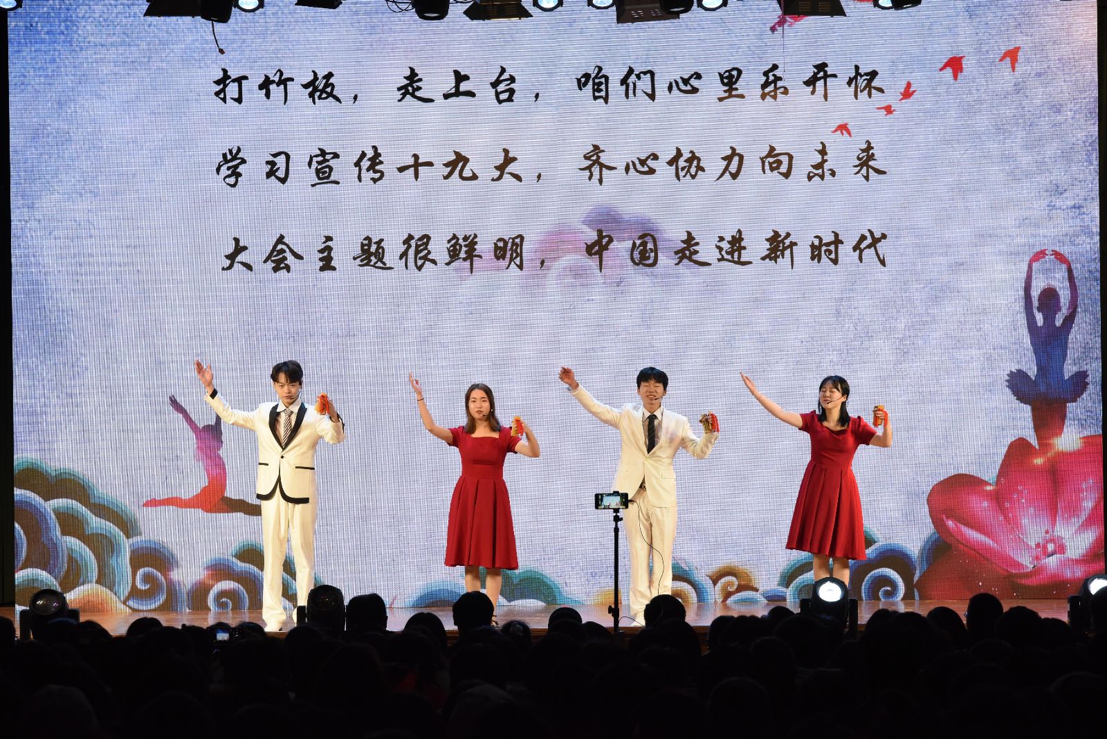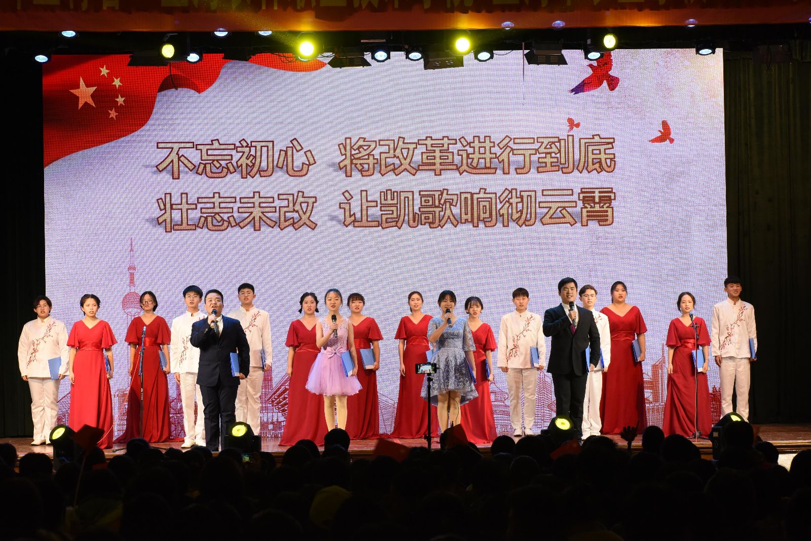 12月28日,“改革新时代 奋斗正青春”2019年元旦文艺晚会在大礼堂献演。校领导蔡红、魏华、俞锦禄、陈谊出席,部分退休老领导、相关职能部门负责人、支部书记、学生工作负责人、教职工及学生代表共1000余人观摩了演出。