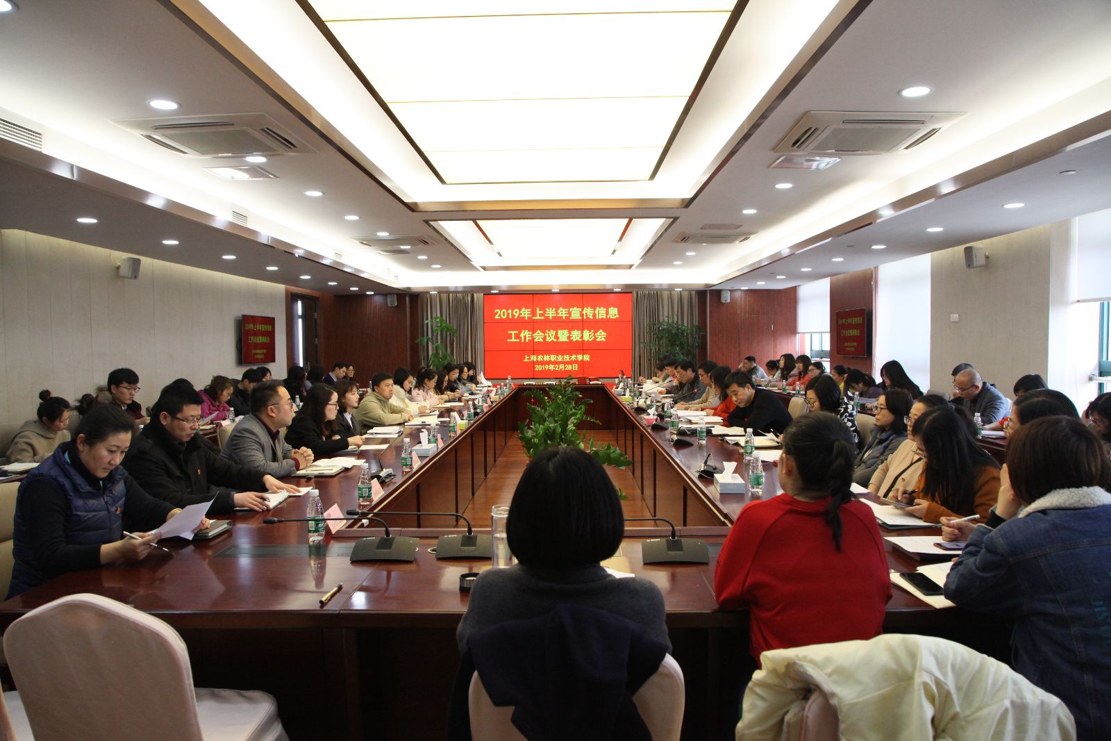 2月28日下午,在第一会议室,学院召开2019年上半年宣传信息工作会议,表彰先进同时部署2019年宣传思想文化工作。党委书记蔡红出席,各部门宣传信息负责人、信息员、支部宣传委员共60人参加。党委副书记、纪委书记俞锦禄主持会议。