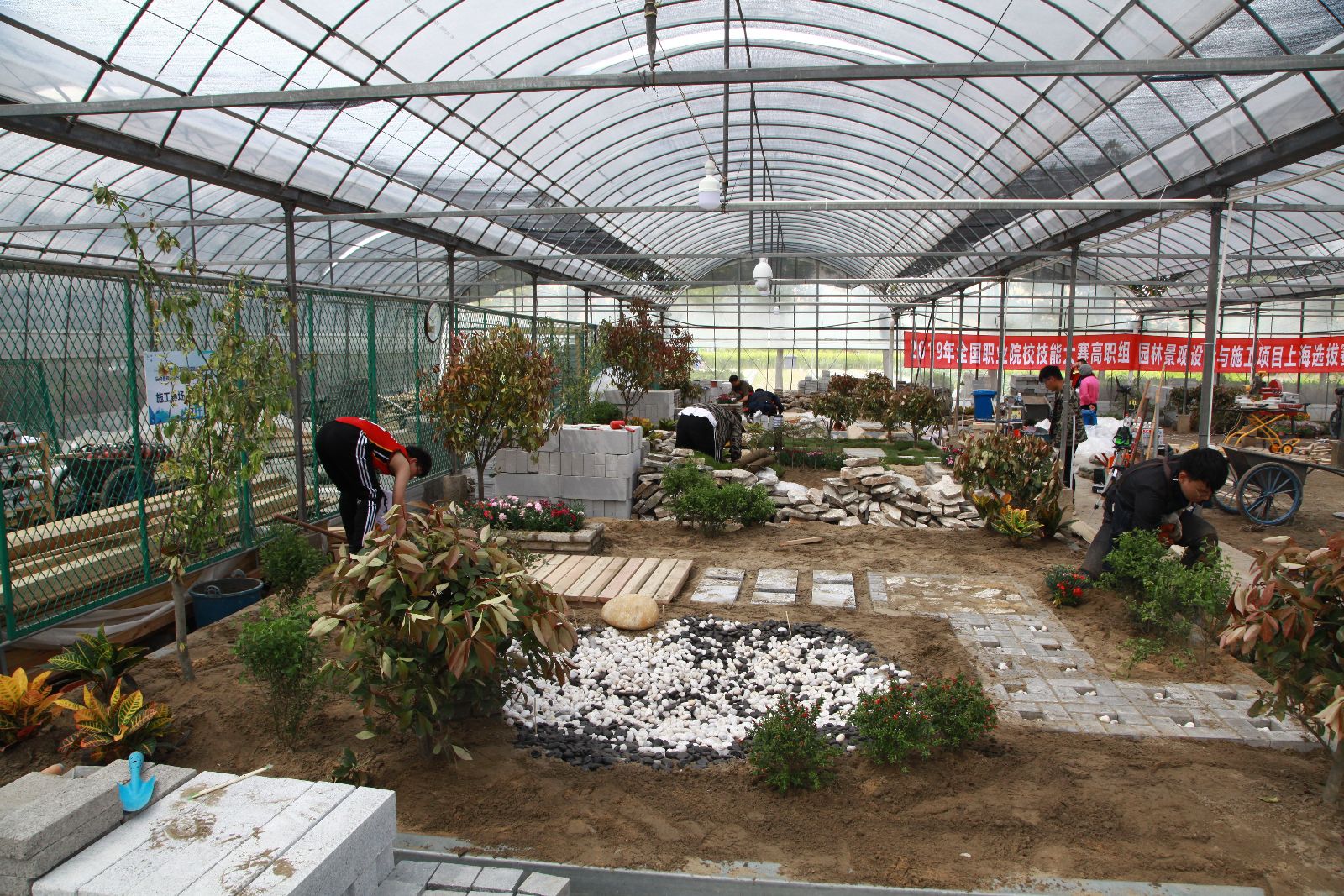 备赛过程中,园林系及时制定训练计划,并协调各方资源,充分发挥行、企业专家的技术优势,在设计理念和施工技能等方面给予有效指导,全方位保障备赛顺利进行。最终选手以饱满的精神状态、扎实的施工技艺,顺利完成了比赛,并取得第一名的好成绩,充分展现出精湛熟练的专业技能和职业素养。