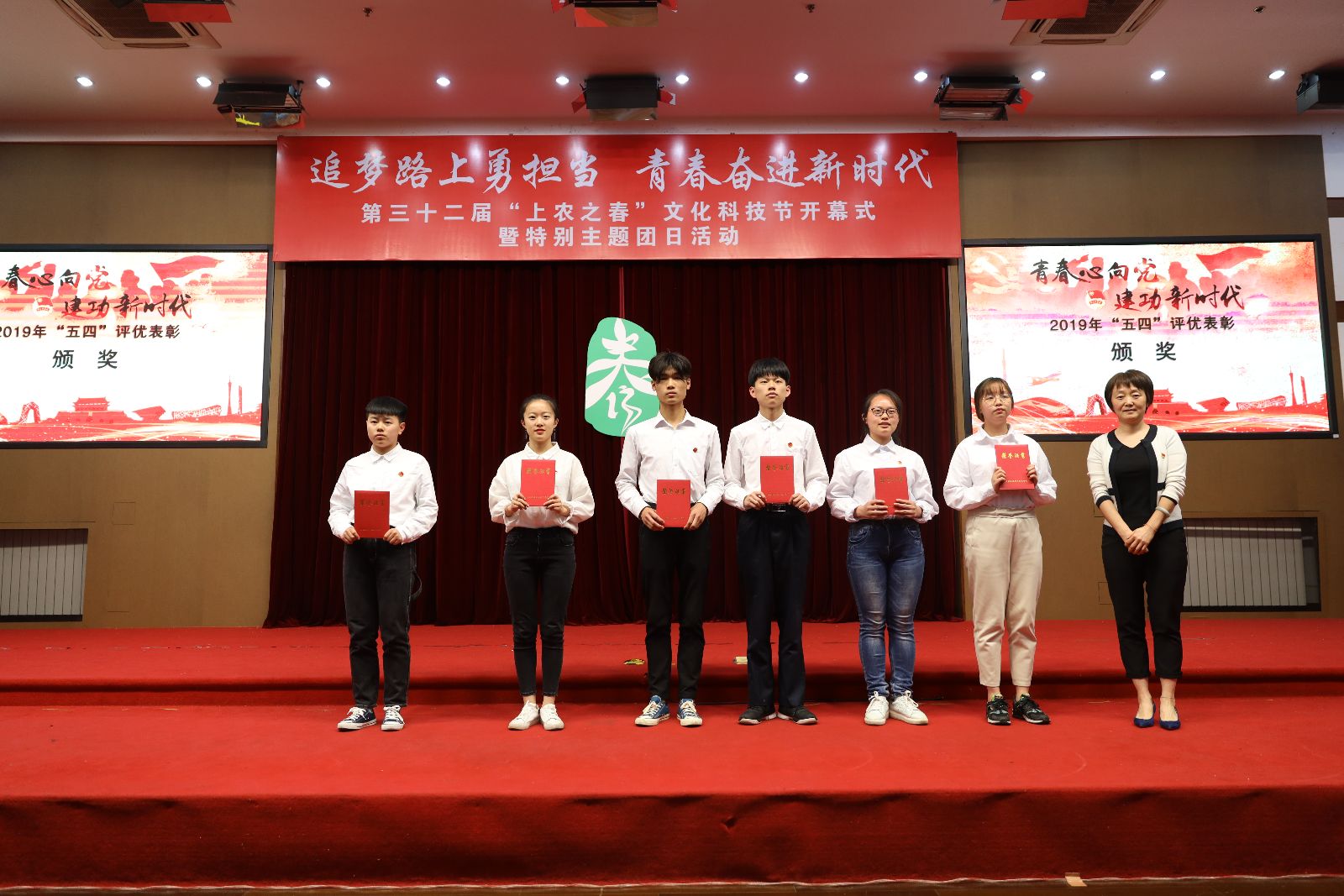 活动现场举行了“五四”表彰,授予董依莎等82人“优秀团干部”光荣称号;任书庚等134人“优秀团员”光荣称号;杨晨等27人“最美团支书”光荣称号;园艺172班团支部等18个团支部“先进团支部”光荣称号;种子181班团支部等15个团支部“活力团支部”光荣称号。党政领导俞锦禄、陈谊、张佳敏、谢锦平、王军亮对获奖集体和个人进行了颁奖。