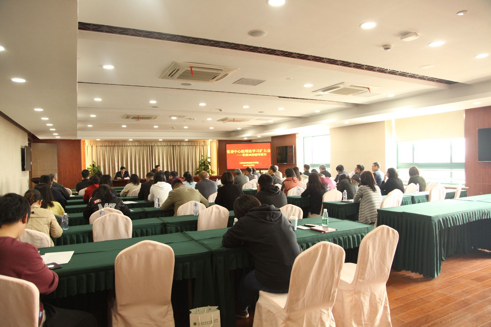 5月8日下午,在第三会议室,党委中心组举行理论学习扩大会,党委书记蔡红为党委中心组成员和全体中层干部作辅导报告,结合学院工作对国家职业教育改革实施方案(简称“职教20条”)谈体会。党委副书记俞锦禄主持理论学习扩大会。