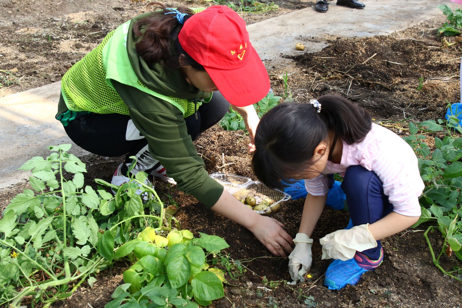 学生亲自下地挖土豆