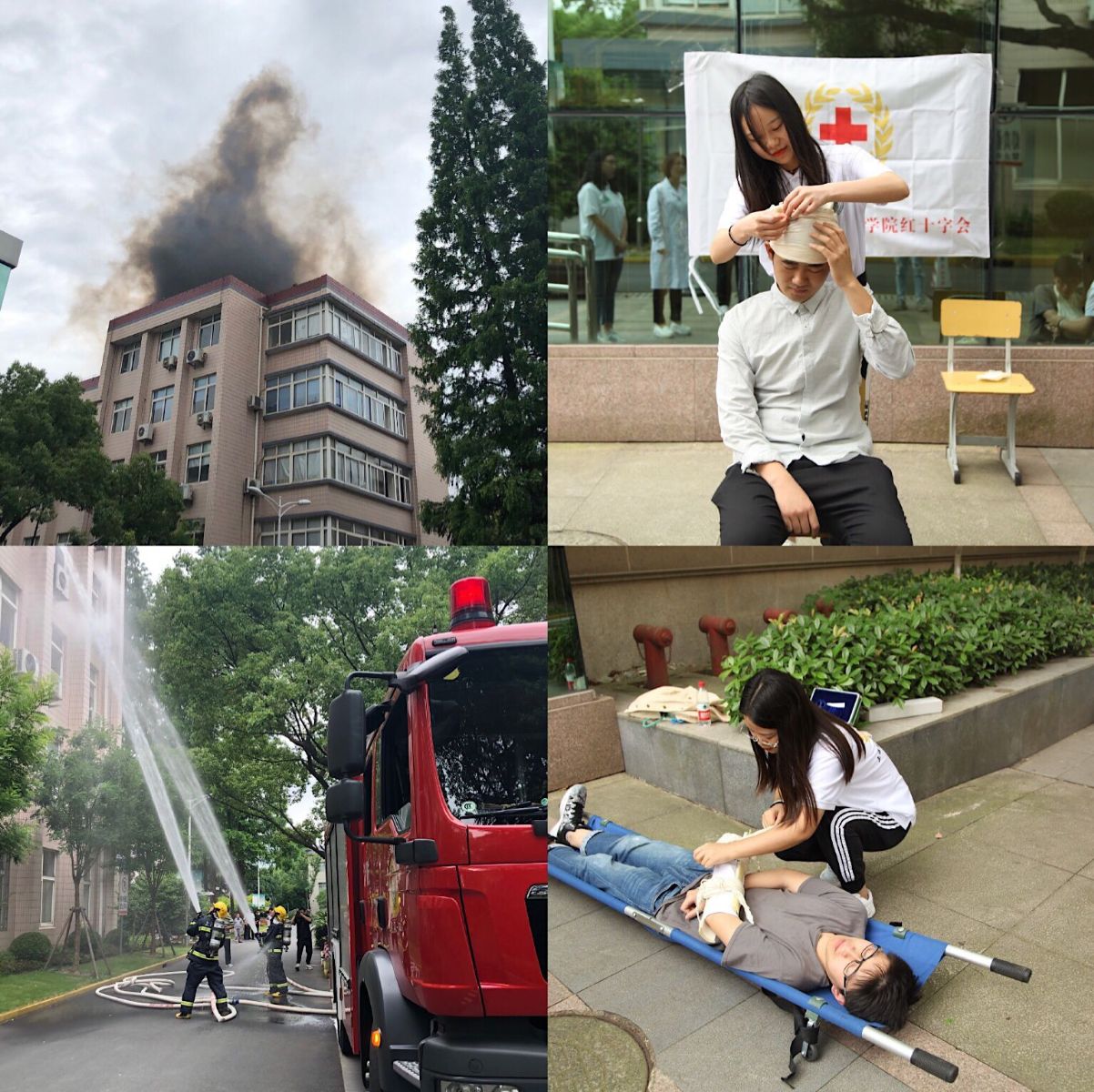本次火灾消防演练得到学生处、宣传处、医务室、红十字会、消防队、校园平安志愿者等多部门和人员的支持,演练前,成立了指挥小组、疏散小组、统计小组,救护小组、引导小组、警戒小组、指导小组、场地搭建组,对各组具体分工进行了细化,确保演练有效、有序进行。