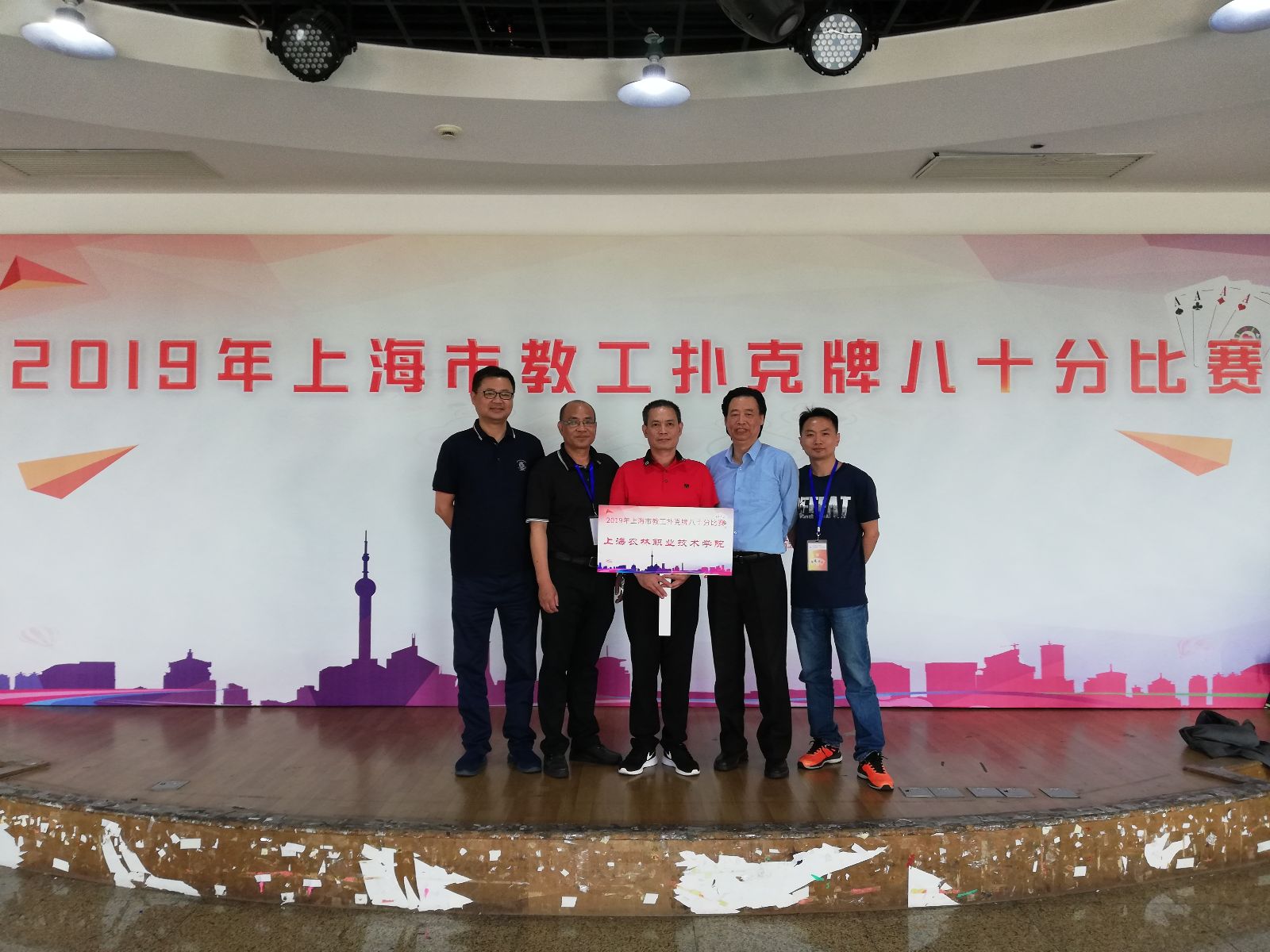 6月2日,上海市教工扑克牌八十分比赛在东华大学隆重举行,上海市教育工会副主席吉启华、东华大学党委副书记、工会主席刘淑慧等领导参加开幕式。由郁金观、郁海根、彭喜欢和成建平老师组成的学院代表队在领队高功辉主席的带领下参加了上海市教工扑克牌八十分比赛。