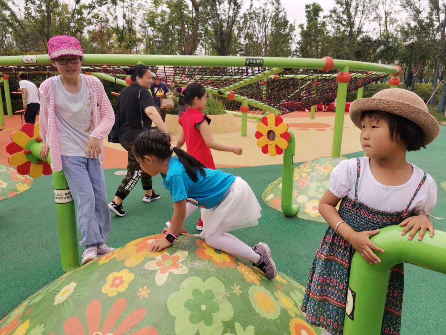 活动当天,各个家庭按照约定的时间到达集合地点有序入场。乐园内,既有全家都喜欢的玻璃栈道,可俯瞰整个深坑世贸酒店全景,又有考验勇气和胆量的崖壁大摆锤,大朋友们纷纷上去体验,更多的是受小朋友们欢迎的项目,小朋友或攀爬精灵树屋,或是奔跑在梦幻水域,而更小的小朋友们则是在沙漠中“考古”,或在虫虫世界里探索。每一个孩子的脸上都洋溢着大大的笑容。教职工们都说过了一个快乐充实的儿童节。