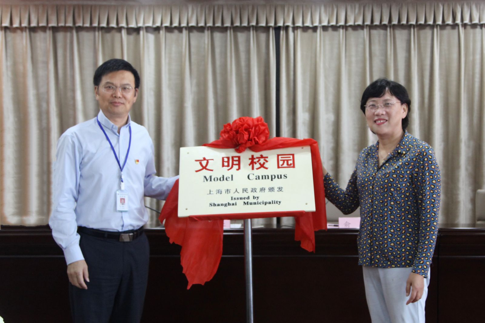 上海市教卫工作党委宣传处副调研员俞真与党委书记蔡红共同为我院首届上海市文明校园揭牌。俞真对我院获评首届上海市文明校园表示热烈祝贺,要大家珍惜荣誉再接再厉争创第二届全国文明校园。她强调,上海市文明校园(原上海市文明单位)每两年评选一次,是上海市精神文明创建中覆盖面最广、影响力最大的文明创建活动之一。上海市文明校园是高校的最高荣誉。她强调,在文明校园创建方面,要深入贯彻习近平总书记关于加强和改进青少年思想道德建设的重要指示精神,围绕培养什么人、怎样培养人、为谁培养人这一根本问题,坚持立德树人,加强学校思想政治工作,加强师德师风建设,开展形式多样、健康向上、格调高雅的校园文化活动,教育引导学生坚定理想信念、厚植爱国主义情怀、加强品德修养、培养奋斗精神,帮助青少年扣好人生第一粒扣子,培养德智体美劳全面发展的社会主义事业建设者和接班人。要在道德实践方面进行探索如诚信体系建设,作为亮点、特色和品牌。