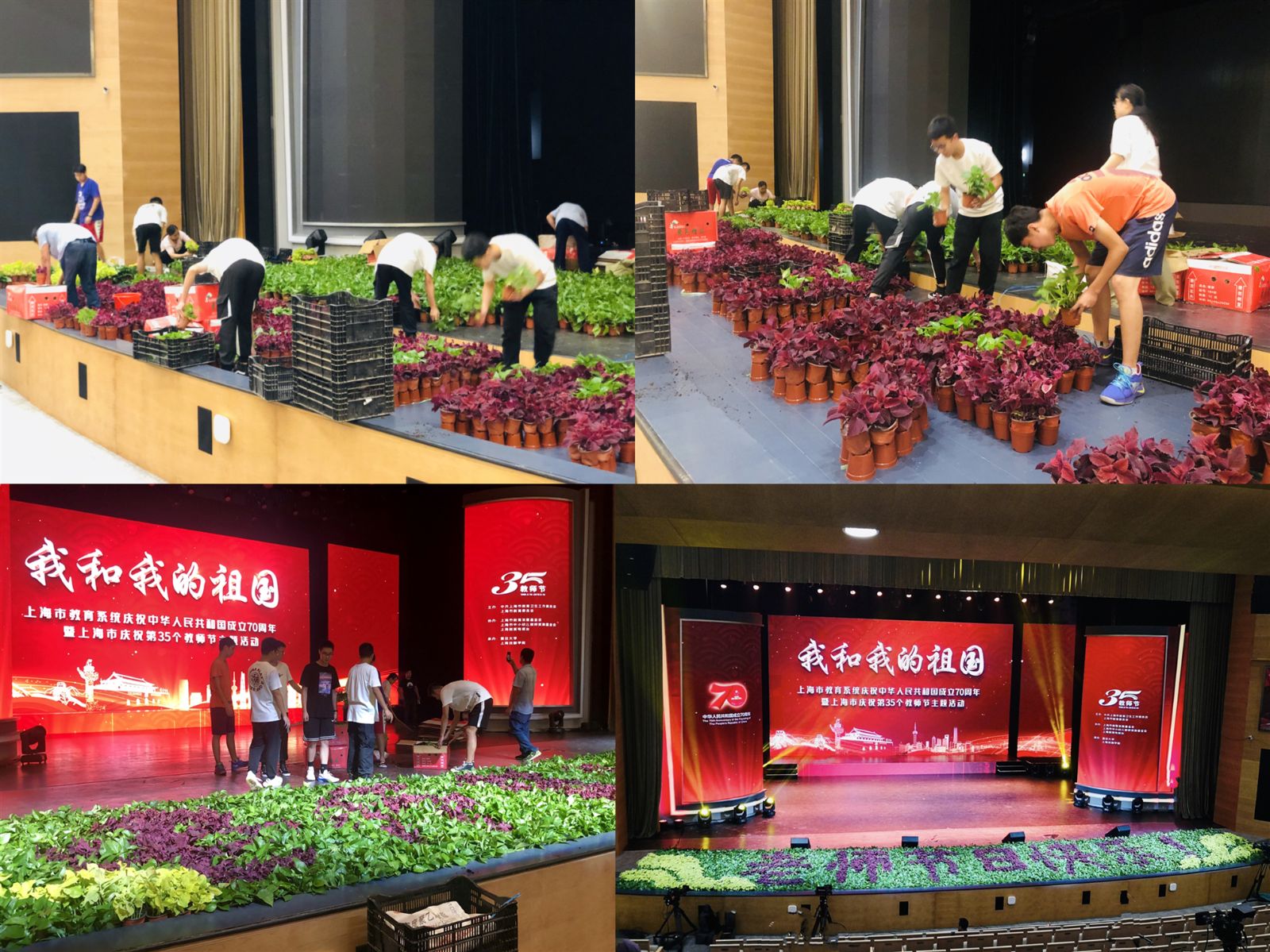 主题活动由中共上海市教育卫生工作委员会、上海市教育委员会主办,作为上海唯一农字头高职院校,学院承接了在复旦大学相辉堂的舞台上,用绿植设计和布展“老师节日快乐”字样。园林系师生参与设计并于9月8日进行舞台布展,宣传处做好相关协调工作。