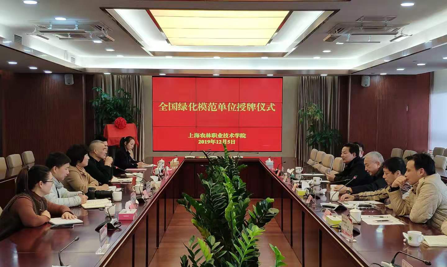 12月5日上午,市绿化办秘书处处长王玉华、松江区绿化市容局副局长徐忠瑞、区园林中心主任蒋建兵等领导莅临我院,祝贺我院荣获全国绿化模范单位并授牌。授牌仪式由市绿化办秘书处调研员孙国强主持,学院副院长张佳敏出席,院办、后勤处等有关人员参加。