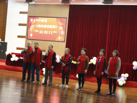 迎春茶话会上,26名离退休老同志演出了精心排练的小组唱《我爱你中国》《我和我的祖国》等7个精彩节目,展现了老同志们“老有所学、老有所为、老有所乐”的积极向上的精神风貌。学院学生社团向老同志们演出了原创农业剧的片段。
