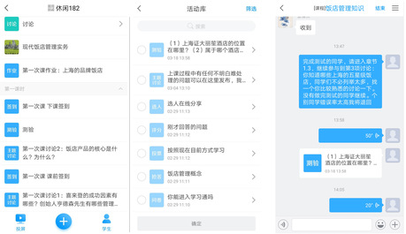 作为较早使用学习通平台开展线上教学的系部,农经系教师对学习通平台的功能较为熟练,开展线上互动的形式多样。李明老师在《饭店管理知识》课程的线上建课过程中通过充分试课、反复研究,进一步熟悉了平台的各种教学功能,在授课过程中利用了签到、通知、主题讨论、在线测试、作业、班级群聊和直播等方式有序组织学生学习互动,教学效果良好。这门课是问卷调研里农经系学生最喜欢的课程。