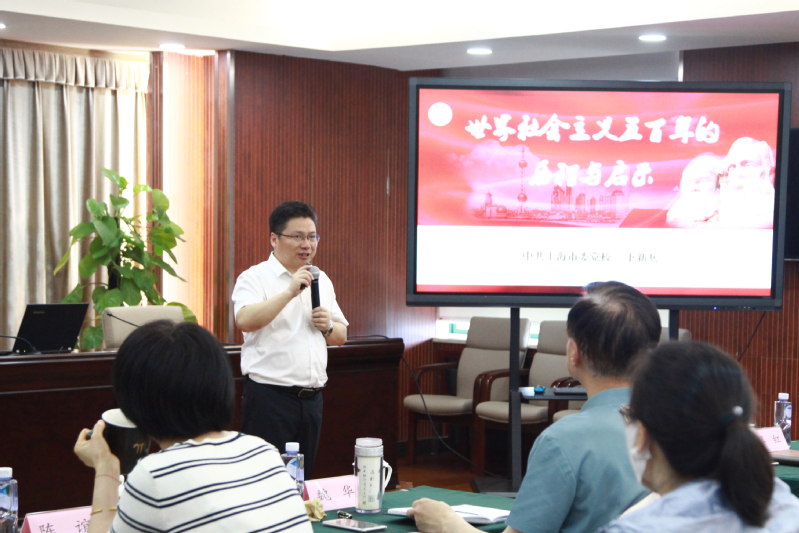 根据“四史”学习教育安排,为使党员干部充分了解世界社会主义发展史尤其是中国特色社会主义发展的进程及取得的重大成就,6月3日下午,在第三会议室,学院举行党委中心组理论学习扩大会,邀请中共上海市委党校卜新兵教授专题讲授“世界社会主义五百年的历程与启示”。党委中心组成员、全体中层正职、党总支负责人、行政支部书记、直属党支部书记、团委书记参加了学习。党委书记蔡红主持学习会。