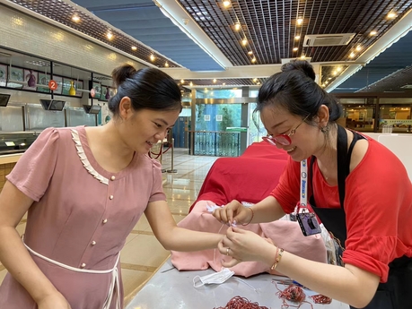 活动现场,学院工会、工会女工委为参加活动的教职工们发放端午礼物“五彩绳”,象征五色龙的“五彩绳”五种彩线编织而成,民间相传在端午节佩戴可以压邪避毒,安康长寿。当教职工们接过编织精美、寓意“安康”的五彩绳时,兴奋不已。活动开始,在退休老同志和食堂师傅的指导下,将粽叶卷成漏斗状,糯米充实压紧,最后细绳捆扎成型,老师们边学边包,情绪高涨。3个小时的活动,从局促、忙乱,到驾轻就熟,包出的粽子堆满食盘,整个活动现场气氛热烈,活动成果丰硕。大家将包好的粽子与未到现场的教职工们一同分享,把浓浓的节日祝福送到每个人的心中。
