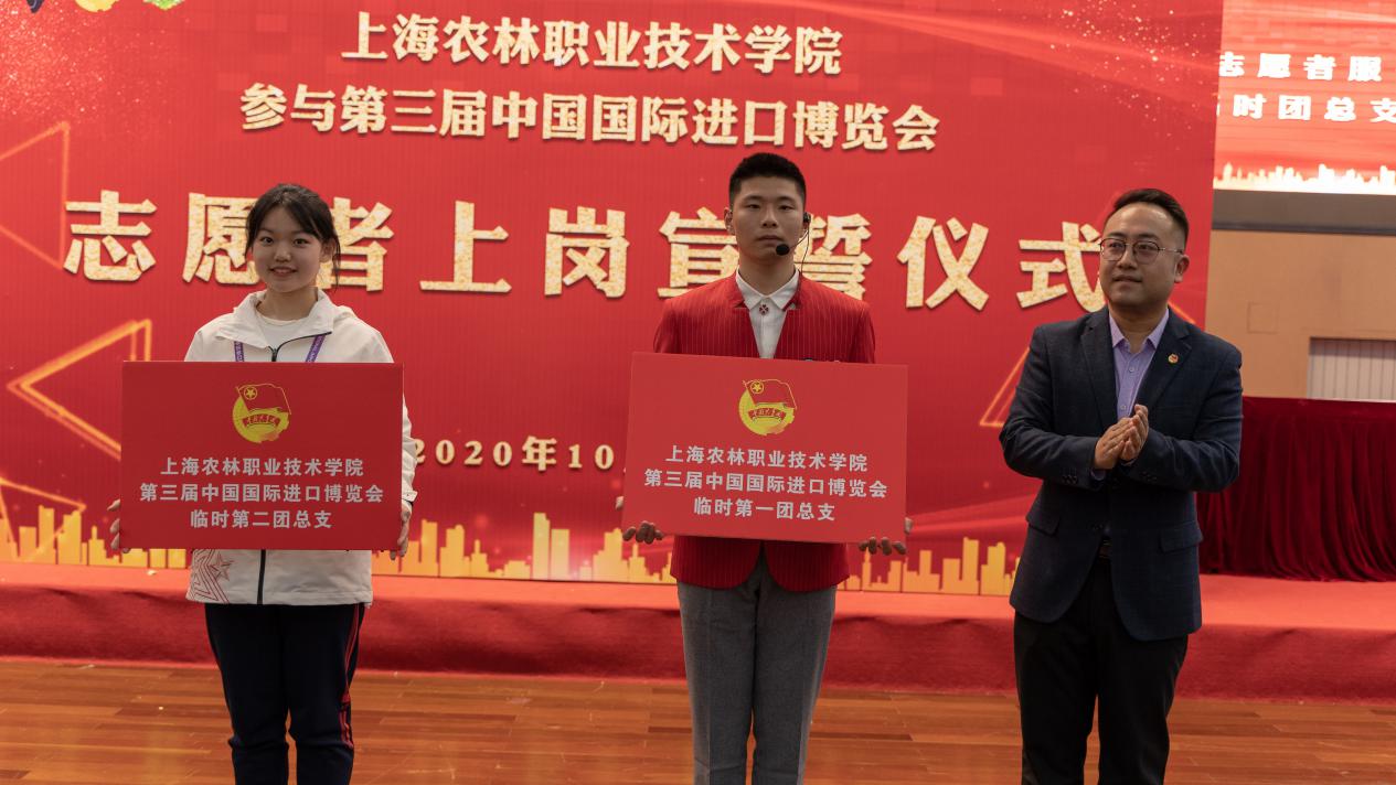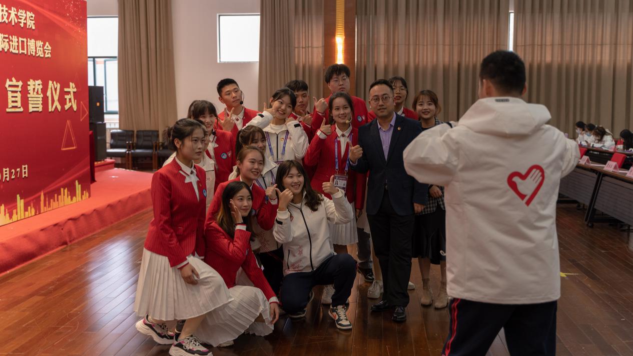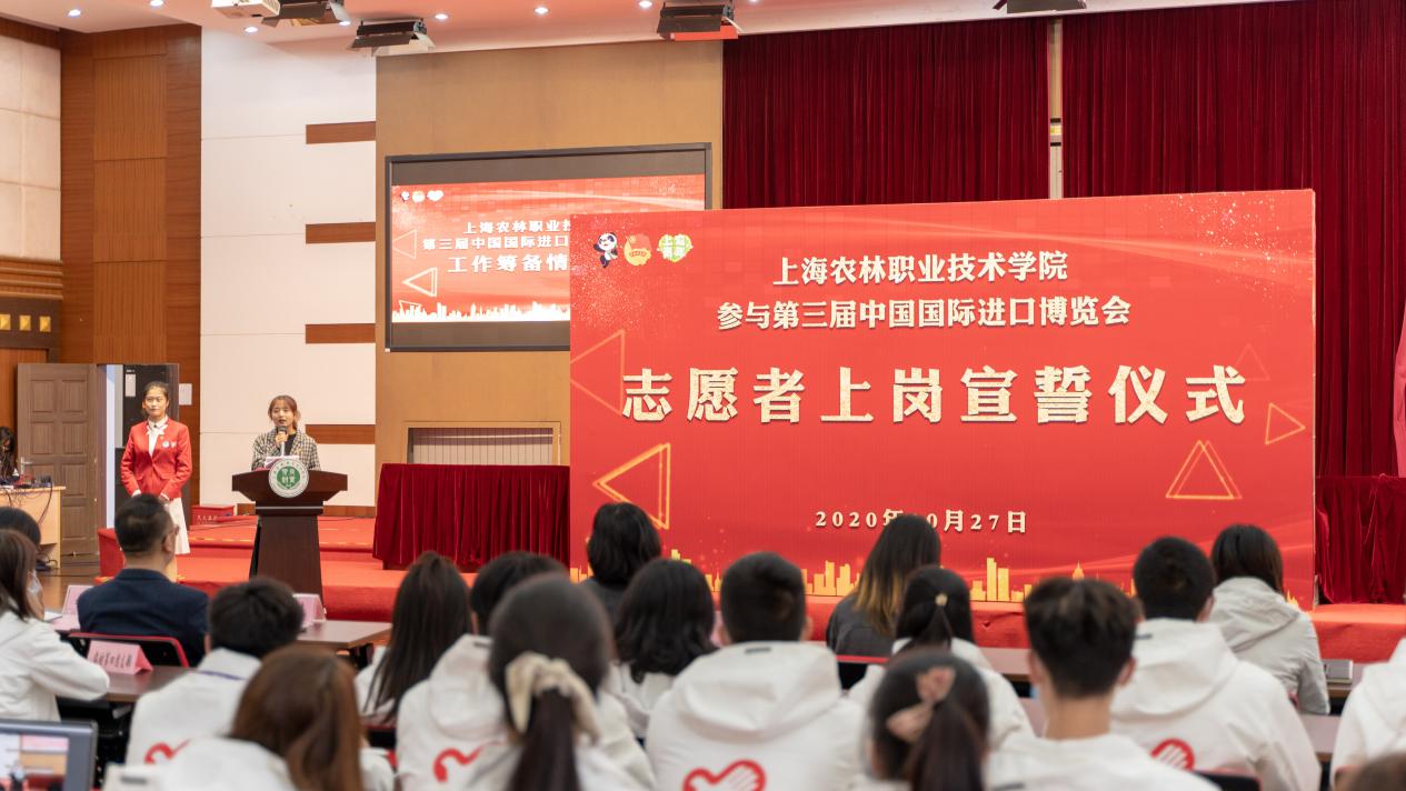 10月27日,在205报告厅,学院举行参与第三届中国国际进口博览会志愿者上岗宣誓仪式。学生处、团委、各系团总支书记与110名第三届进博会志愿者一同参加。