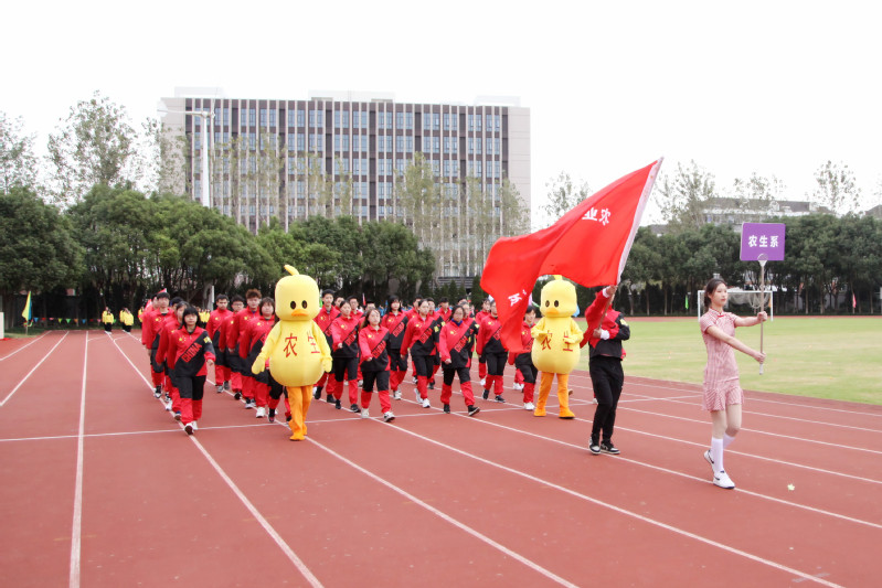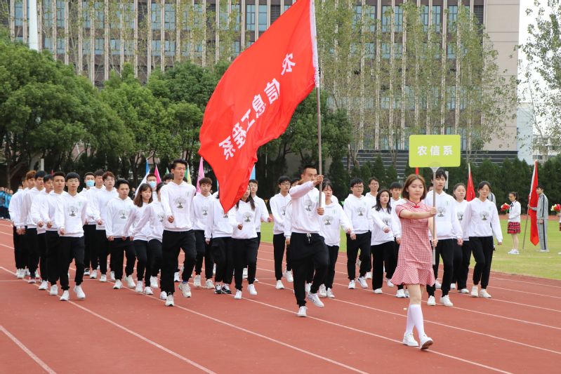 在国旗队、校旗队、鲜花队、红旗队的引导下,植物科学技术系、风景园林技术系、动物科学技术系、农业生物与生态技术系、农业经济管理系、农业信息工程系和中职组7个方阵踏着整齐的步伐,喊着响亮的口号进入运动场,运动员们精神饱满,意气风发。