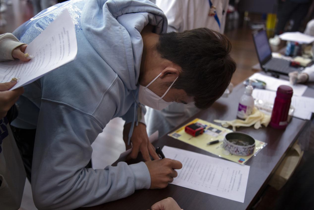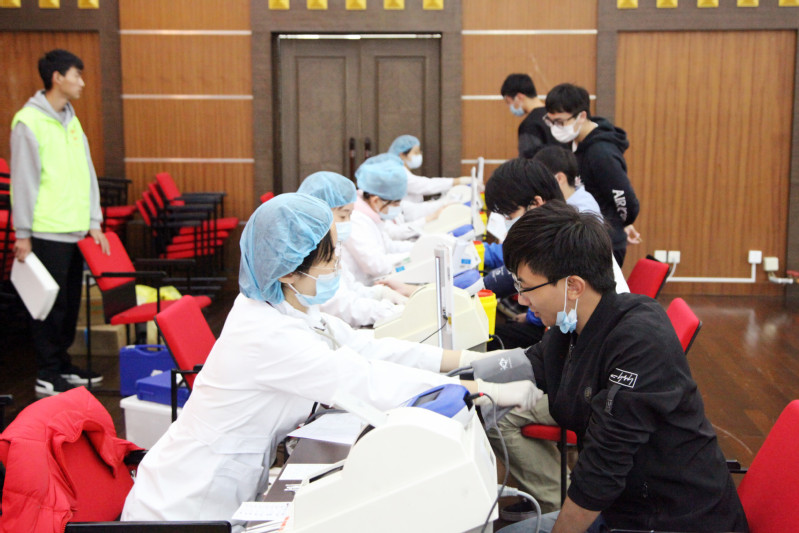 上午8点整,第一批参加献血的同学们就来到了献血场地,场内设置了休息区、体检区、献血区、休息区、领证区等区域,献血师生有序排队,现场填表、化验、等候、抽血等环节有序开展。充满着爱心的温暖气息。“我献血,我光荣”,这是每一位献血师生发自内心的声音,大家的脸上都洋溢着一份幸福的神情,充分传递了赤诚青春、为爱举手的可贵精神。