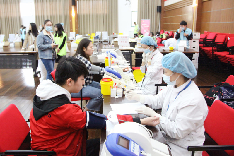 11月3日,在205报告厅,6名教师和334名学生参加了学院2019年无偿献血。