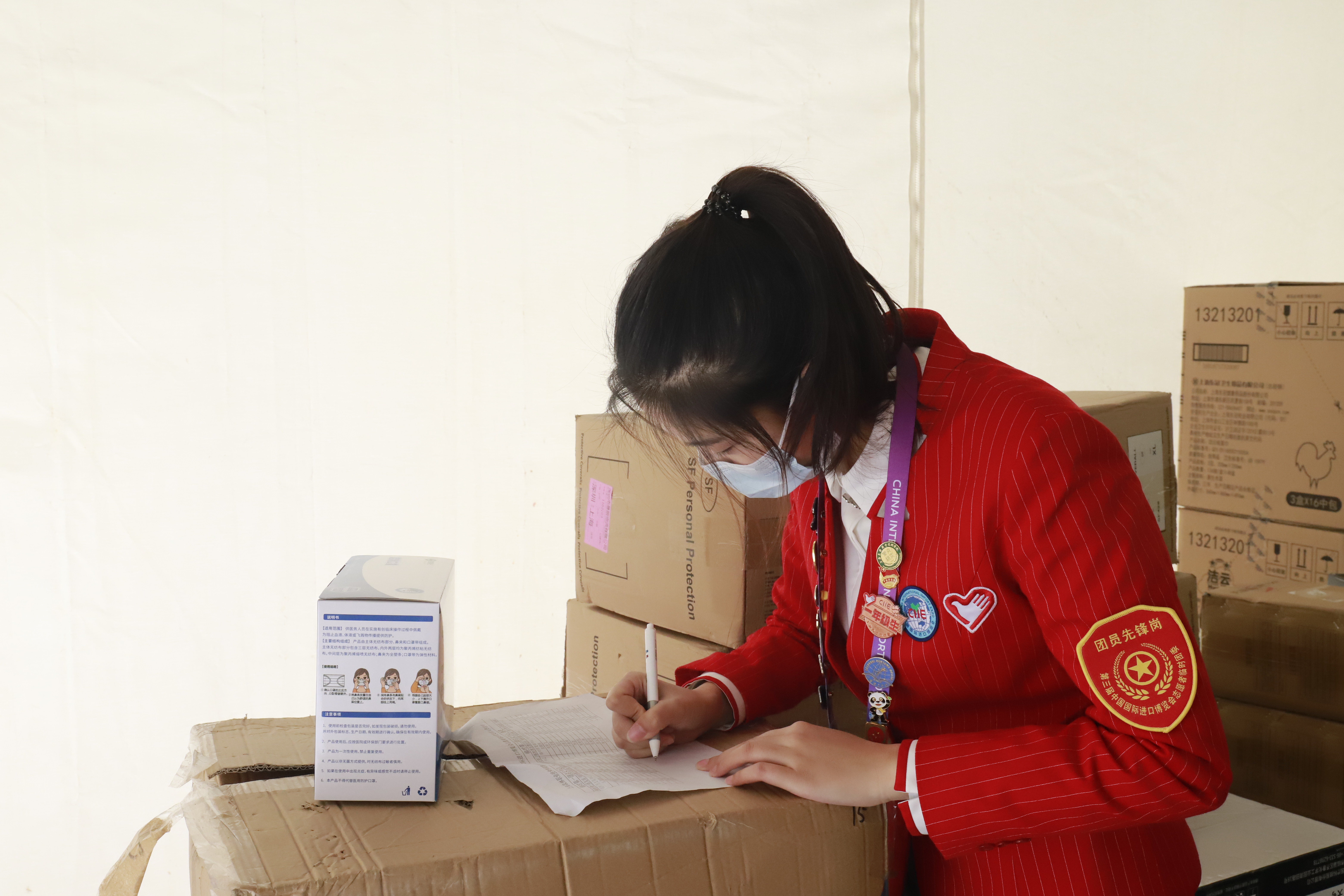 第三届进博会志愿者主要来自上海40所院校的学生。在学院党委和团市委的领导、指导下,院团委高度重视,于暑期及开学初在全院范围内进行招募,累计招募人数362人,院团委分别思想政治素质、进博认知、学习成绩、仪表举止、英语水平、组织协调、心理素质和疫情防控知识认识等方面进行对志愿者一一进行面试。11月2日起集中上岗,主要分布在国家会展中心5号口、7号口和P5停车场提供人流引导、秩序维护、提示佩戴口罩等工作,每人每天上岗时间近12个小时,服务总时长近万小时。时间跨度长、早出晚归、任务重大,都给小叶子们带来了很大挑战,但他们信念坚定,克服身心种种困难,在岗位上尽职尽责、时刻待命,积极促进进博会志愿活动的顺利开展。