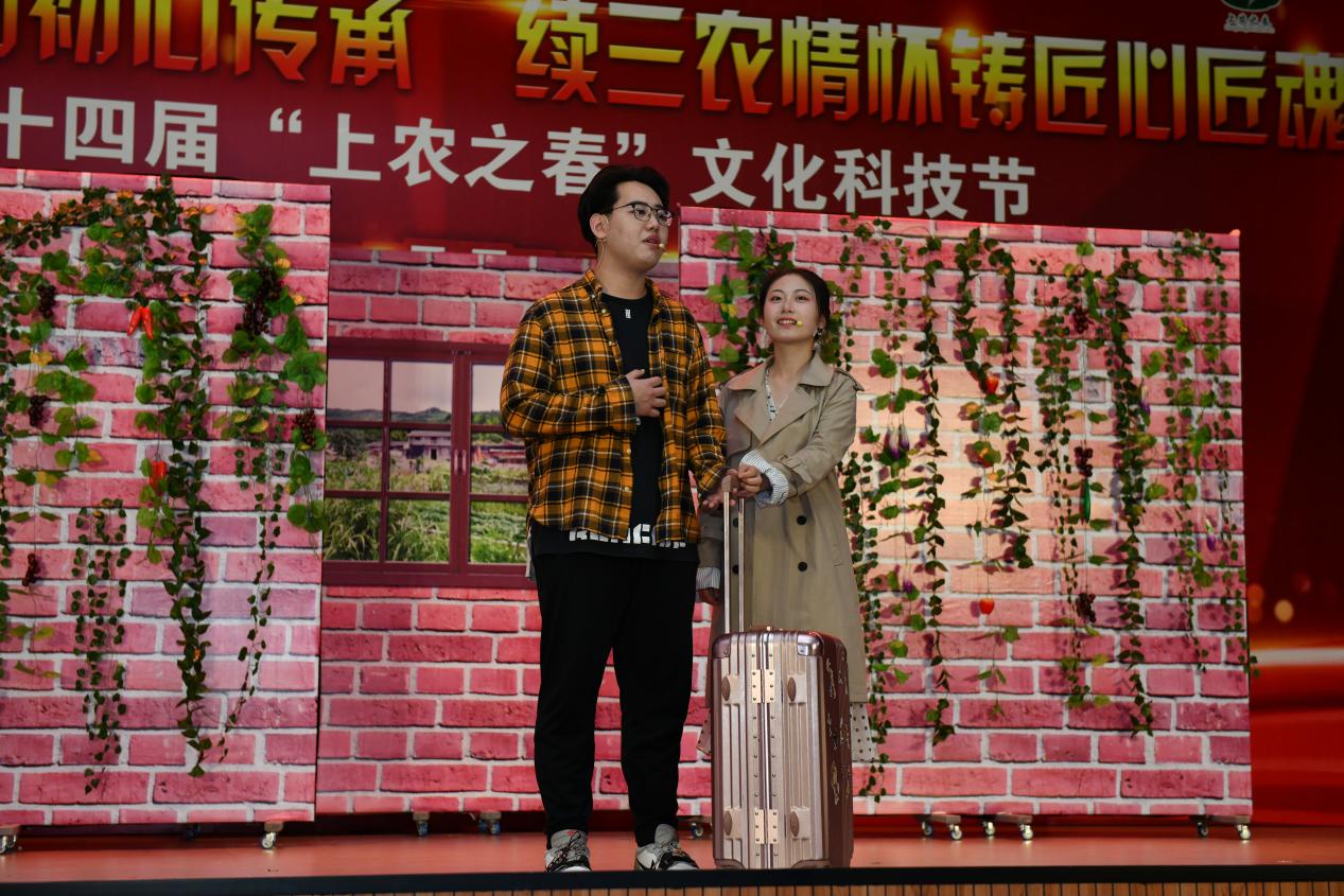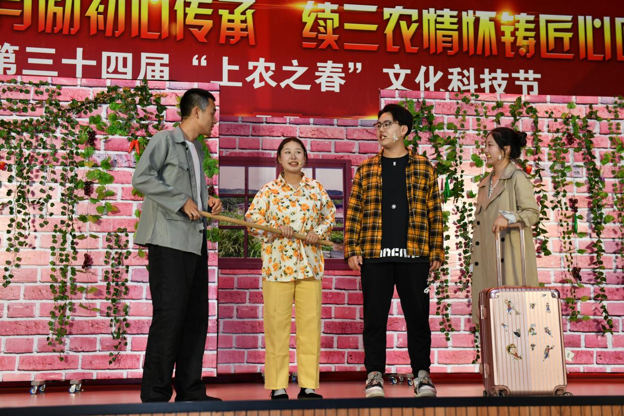 开幕式结束后,进行了原创农业剧《三农有梦 青春无悔》的公演,该剧以剧中人物在农村的生活点滴为主线,通过幽默诙谐的人物对白、发人深省的剧情碰撞激发青年学子投身农业的热情,坚定从事农业的决心。在演出内容上突出学院专业特色,坚持为农服务方向,促进广大学生学农、爱农、务农,为培养青年农业人才提供广阔的舞台。演出让在座的很多同学深受教育与鼓舞,意味深长的台词和表演者精彩的演技赢得了师生阵阵掌声。后续,院团委还将进一步收集意见,不断打磨、添加新元素,让每一届学生精心演绎和传承,使该剧成为学院弘扬农耕文化的亮丽品牌。