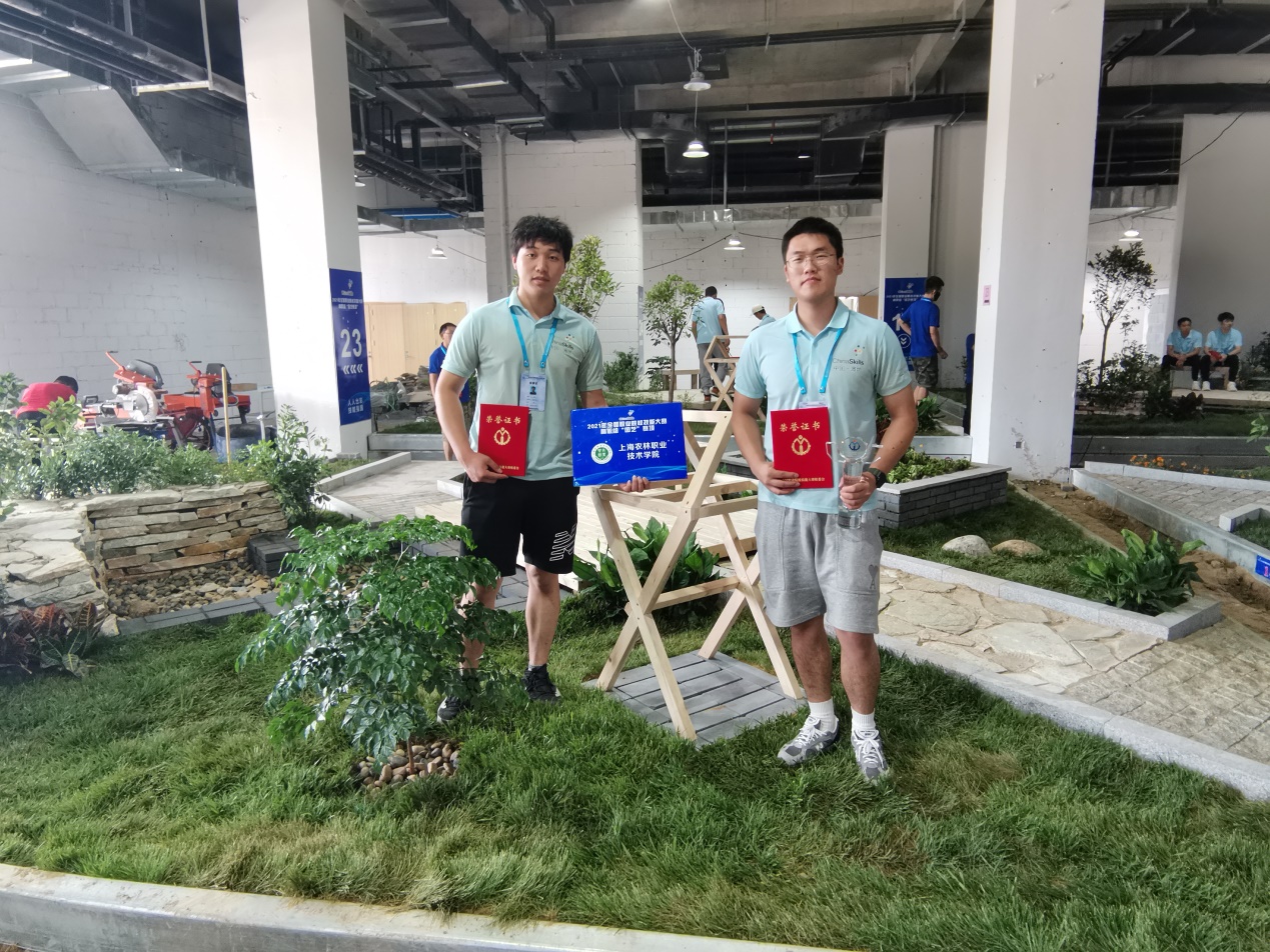 此次国赛得到学院领导和相关部门的高度重视与支持。为备战此次国赛,园林系精心筹划,高效组织,本着早安排、严要求的原则,在全系范围内层层选拔,最终确定张漭蟒和孙毅2名选手参赛。在集训期内,指导教师全力以赴地悉心指导学生。两名参赛选手刻苦练习,对自己高标准、严要求,针对操作要点、难点及每一个细节的精准度反复推敲研磨。指导教师和参赛学生充分发扬了“一丝不苟、精益求进、坚持不懈”的工匠精神,最终2名选手在比赛现场稳定发挥,取得了一等奖的好成绩,充分展示出我院学子的职业素质和精神风貌。