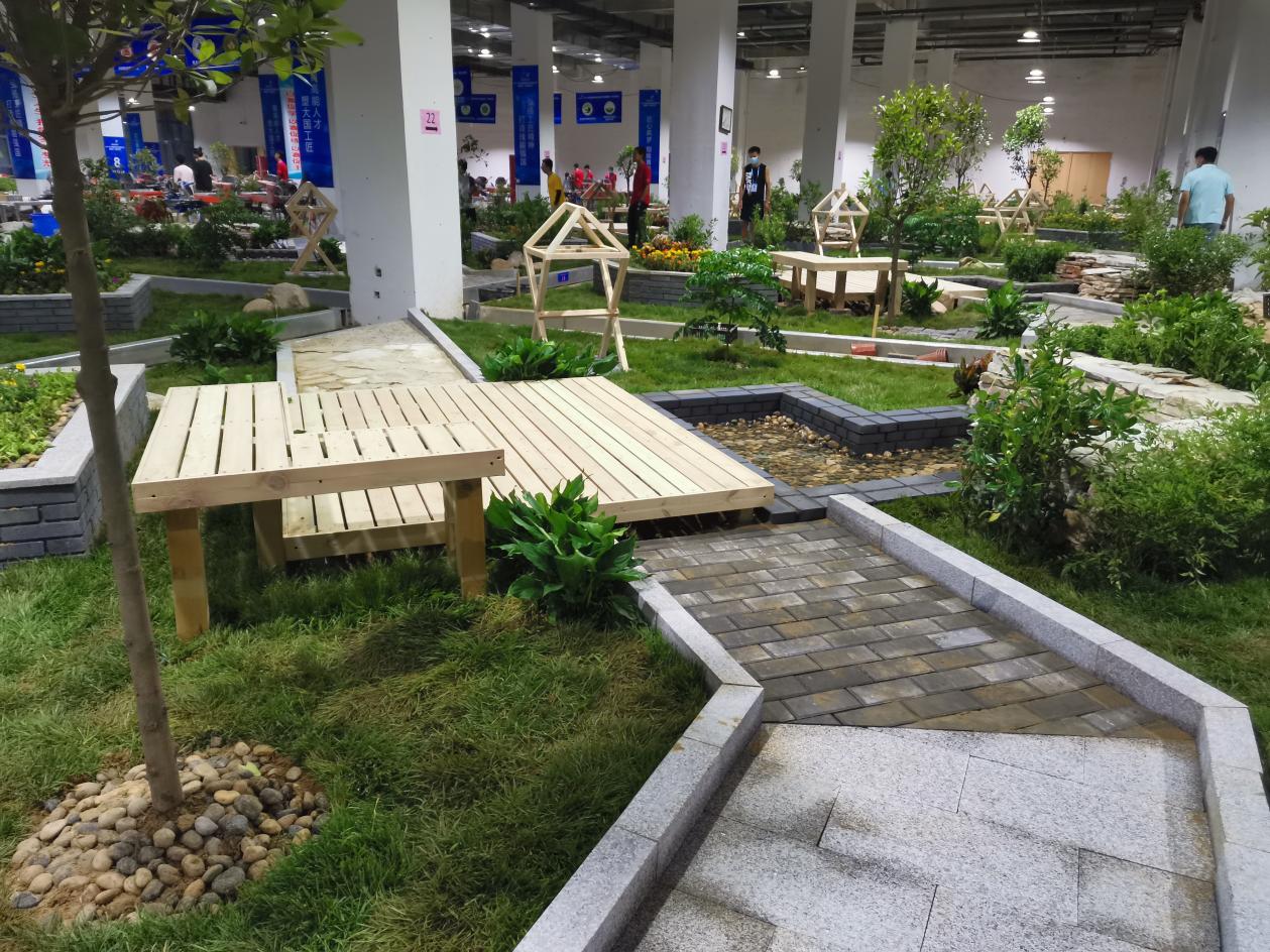 全国职业院校技能大赛园艺赛项为团队赛,每队2名选手,来自全国各个省、自治区、直辖市的28支代表队共计56名选手参加。我院园林系学生张漭蟒和孙毅作为上海队参赛选手,代表上海与来自全国各个院校的高水平选手同台竞技。赛项要求选手在22小时内在49㎡(7m*7m)的施工区,团结协作、相互配合,按设计好的赛题进行造景。赛题包含木作、砌筑、铺装、水景营造、植物造景等模块,各参赛选手使用工具对指定造景材料进行制作、安装、布置和维护,将各个模块有机结合在一起完成一件园艺作品,这对在校学生的体能及实践动手能力是一次全面、深入的考验。