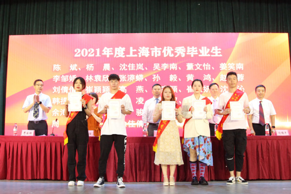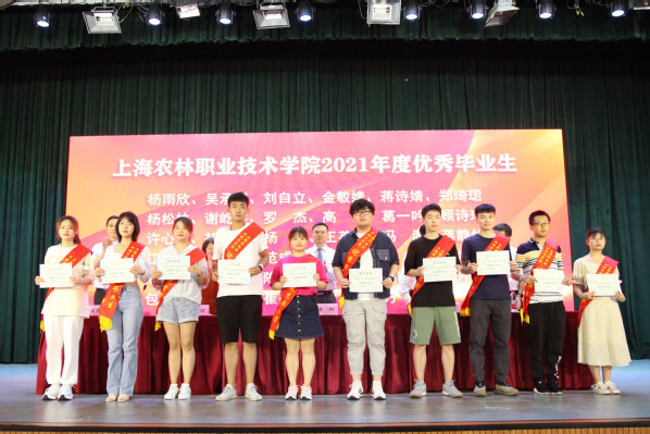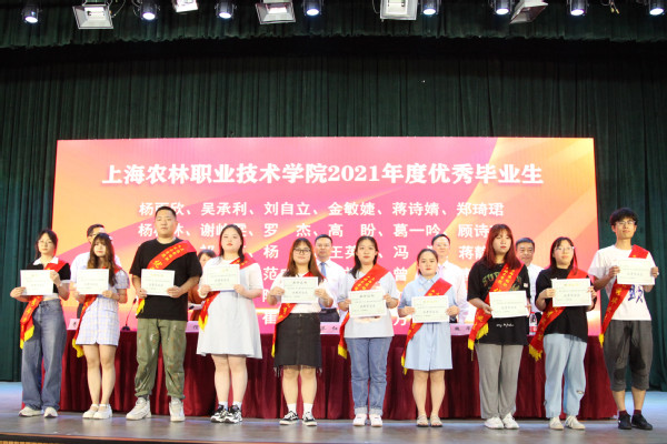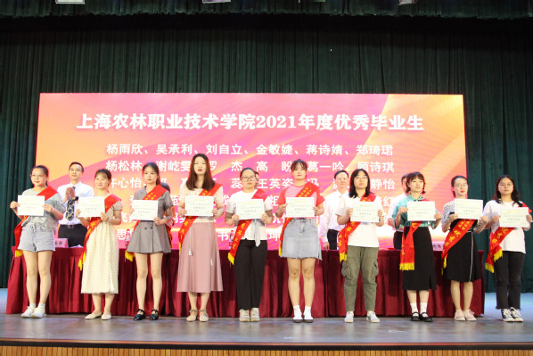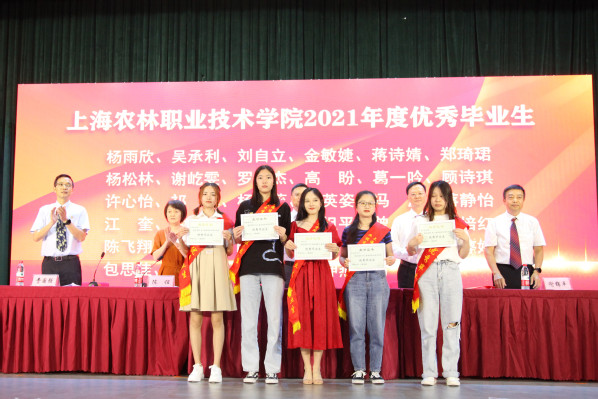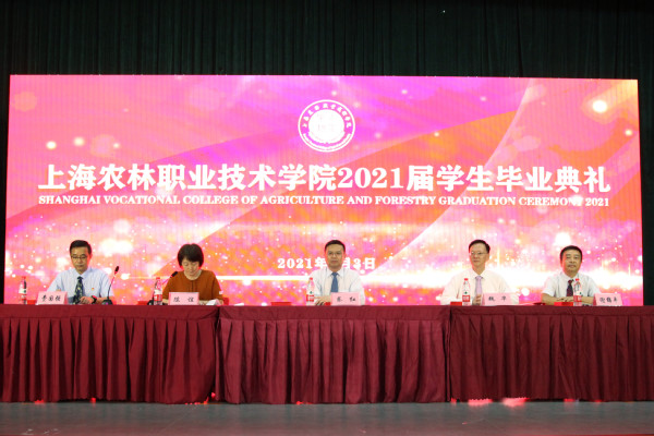 副院长谢锦平宣读《上海农林职业技术学院关于准予2021届毕业生毕业的决定》;副院长费国强宣读“上海农林职业技术学院2021年度优秀毕业生表彰决定”和“2021年度上海市优秀毕业生表彰决定”,党政领导现场颁发上海市高校优秀毕业生、学院优秀毕业生和学生毕业证书。