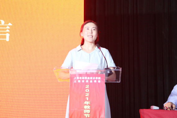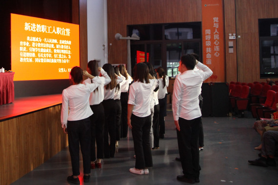 随后举行颁奖仪式。王妍、曾蕊、赵文旻老师分别代表优秀教学质量奖、优秀辅导员(班主任)以及“四有”好老师分享了做好教学工作、学生工作、以及践行“四有”好老师等方面的经验和体会。王海丽老师带领17名新进教职工进行了入职宣誓。