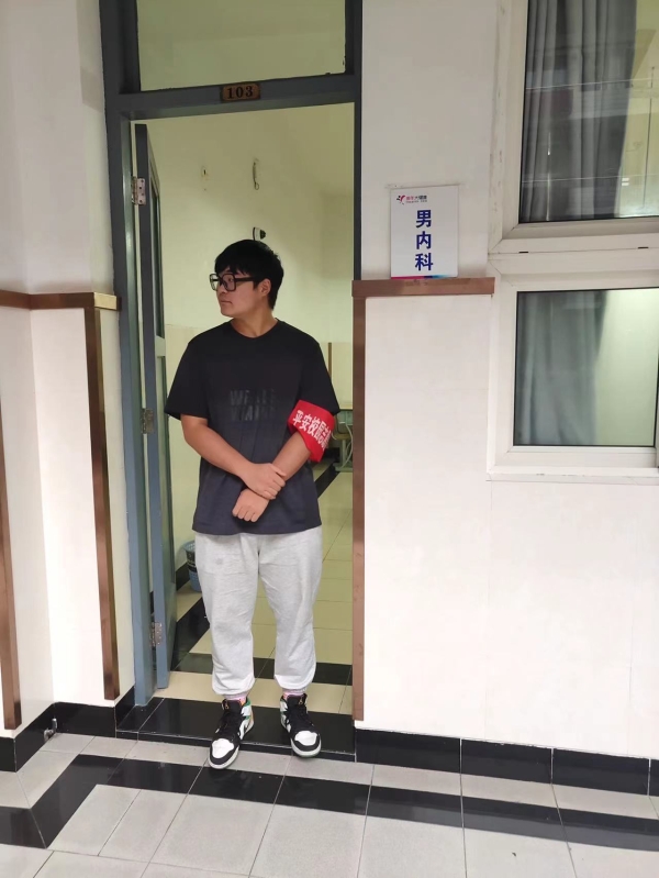 为防止新生出现晕血、低血糖头晕等意外发生,特布置志愿者在抽血处开展巡逻查看,随时观察学生的状态和做好耐心安抚工作,确保新生们顺利完成抽血检查。