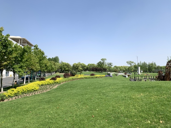 园林绿化实训园,占地20000平方米,包括园林树木、草坪及露地花卉三个实训区。其中,园林树木实训区内种植常用绿化乔木、灌木、地被植物、藤本植物及水生植物,总计200余种,可提供树木识别、修剪、养护及景观设计等项目的实训。草坪实训区占地5000平方米,建有上海地区常用的多个品种的冷季型、暖季型草坪并配置与此相宜的喷灌设施和草坪机械,可提供草坪建植、草坪修剪、草坪养护等项目的实训。露地花卉实训区主要轮换种植各种露地花卉,包括一二年生花卉、多年生花卉等,可提供花卉识别、花卉种植、花坛花境设计与布置等项目的实训。