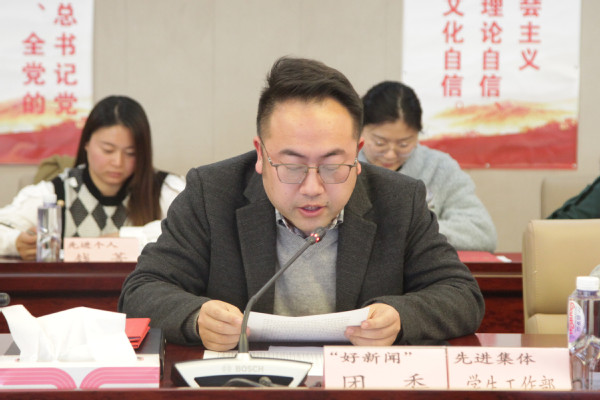 会上,樊清誉宣读了学院党委《关于表彰2021年度“好新闻”、宣传信息工作先进集体和先进个人的决定》。为总结经验、表彰先进,学院党委开展2021年度“好新闻”、宣传信息工作先进集体和先进个人评选活动。经过部门申报、信息工作领导小组评议、学院审批等工作程序,《学校举行党委中心组理论学习扩大会暨党史学习教育辅导报告》等15篇新闻被评为2021年度学院“好新闻”;学生工作部、植物科学技术系、动物科学技术系荣获2021年度宣传信息工作先进集体;丁炎慧等12位同志荣获2021年度宣传信息工作先进个人。陈谊对“好新闻”、先进集体、先进个人进行了表彰。