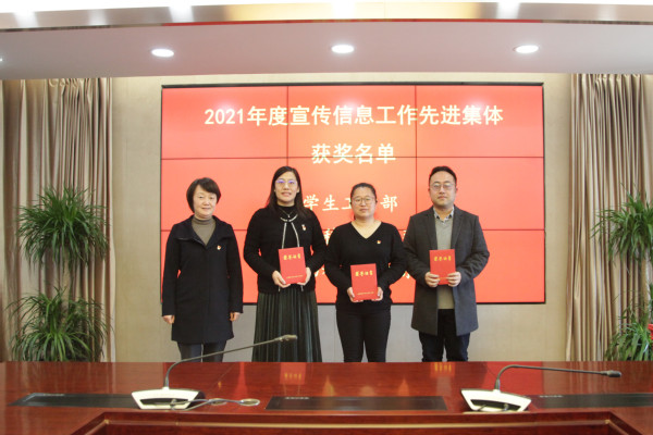 最后,陈谊对获奖部门、集体和个人表示热烈祝贺,对全体宣传信息工作者在2021年所取得的工作成效予以肯定,正是因为大家勤于“笔耕”才使得学院建设发展成效及时得到了宣传报道,产生了良好的社会影响力。强调思想文化和意识形态工作是2022年学院工作重点之一,要从五个方面“下功夫”:一是提高政治理论水平,厚植职业素养。要把提高思想政治理论水平和职业教育相结合,以高度的政治责任感、坚定的政治站位,弘扬正能量,做好新时代党的宣传思想工作。二是提升统筹谋划的履职能力。要提高全局意识,强化整体思维,围绕学院中心工作开展宣传报道,展现通力合作推动学院各项事业高质量发展的精气神。三是牢牢守好主阵地。要始终坚持党对宣传思想工作的领导权,坚持正确的舆论导向,全面掌握师生思想动态,严格守牢课堂教学主阵地、校园文化阵地和网络阵地,以党建引领教育,做好思想文化宣传工作。四是创新宣传思想品牌,扩大学院影响力。要充分用好用活“一支部一品牌”“一系部一品牌”形成的有力机制,继续提升信息宣传质量,创新宣传工作模式,深挖典型案例,加大社会宣传力度,讲好“上农”故事,进一步提升社会影响力。五是一以贯之不断提升工作质量。要持续加强学习掌握新知识,拓宽新视野夯实本领,不断增强脚力、眼力、脑力、笔力“四力”,提高学院信息宣传的质量和实效,助推学院“双一流”建设和“十四五”规划落地生效,进一步提升学院社会知名度、美誉度,树立学院良好形象。