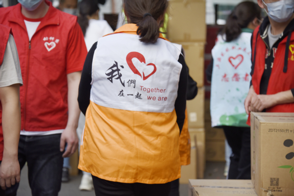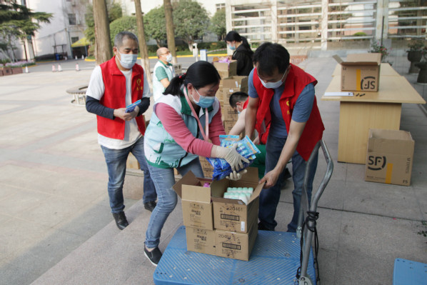 教师志愿者搬运、分发物资