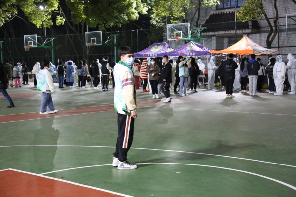 经管系团总支副书记侯星宇同学说:“夜里十二点突然收到通知要全员核酸,收到消息后立刻联系志服部安排了10名志愿者待命,我负责维持核酸检测排队秩序,并提醒大家戴好口罩,提前打开健康云预约登记,在面对不会操作的同学时也耐心指导。作为一名大学生,虽然不能去战疫前线,却也希望尽绵薄之力,为打赢疫情防控阻击战贡献自己的青春力量。”