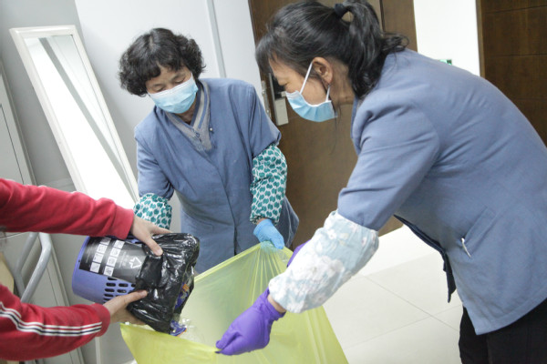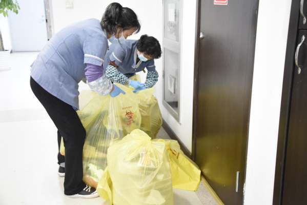 后勤条线的人更忙碌了。食堂的师傅们由封闭管理时期的“派饭员”回归后厨,为三千多师生员工采购食品,做好一日三餐,日复一日。打扫卫生的阿姨奔忙在各楼层,收取垃圾房的垃圾还进到办公室收取垃圾,看着她们为了给教职员工洁净的工作生活环境而奔忙,唯有一声声“谢谢”才能表达心意。