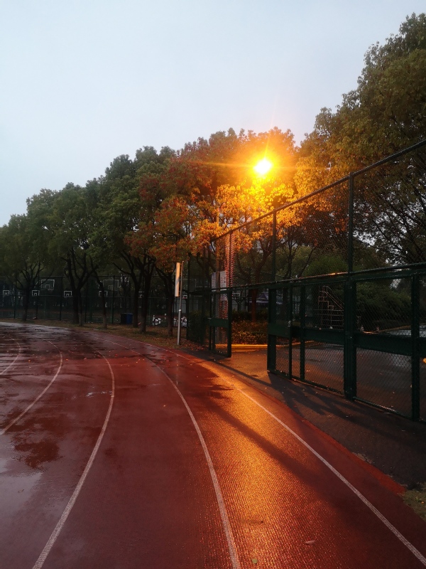 校内活动场地开放,活动的人多了。乒乓球房里,所有球桌都有学生在打球,看,挥拍击球的架势有模有样,你来我往,欢笑声此起彼伏;室内体育馆,四个学生在打羽毛球,两两对战,严阵以待;农信楼的羽毛球场地上,学生们也在接打羽毛球,活动筋骨。因为雨天,露天跑道上,有些空旷,只有路灯洒下的桔黄色光线与之相伴,还有拍下这个景象的人,不在取景框里。