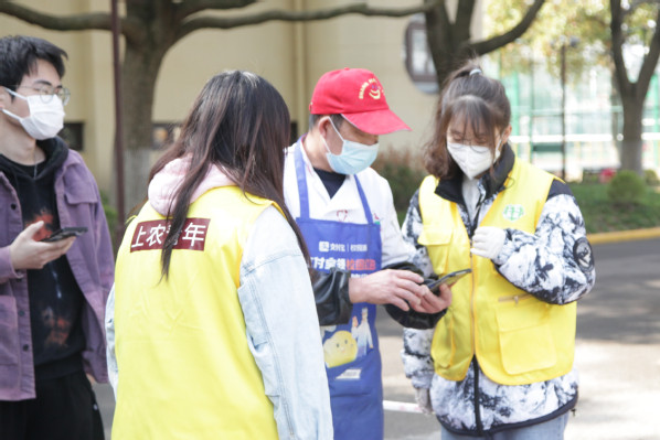 上农青年志愿者引导大家进入检测点