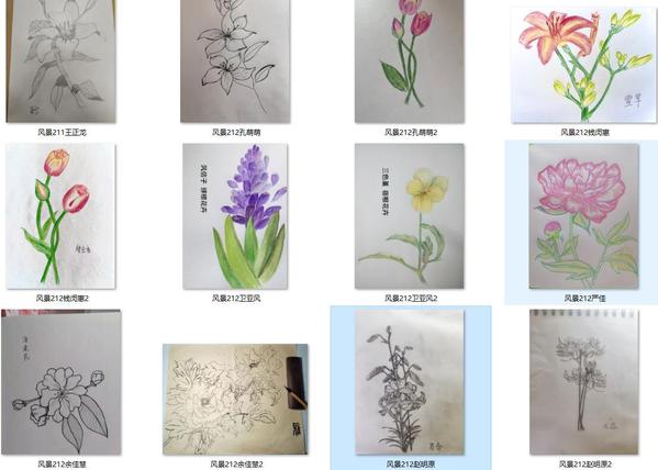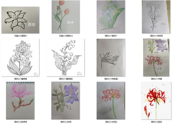 《园林花卉》课程画花作品