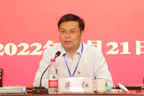 党委书记蔡红向大会作题为《坚持深化质量建设 培养“一懂两爱”人才 为建成全国一流农林职业院校而不懈奋斗》的行政工作报告。