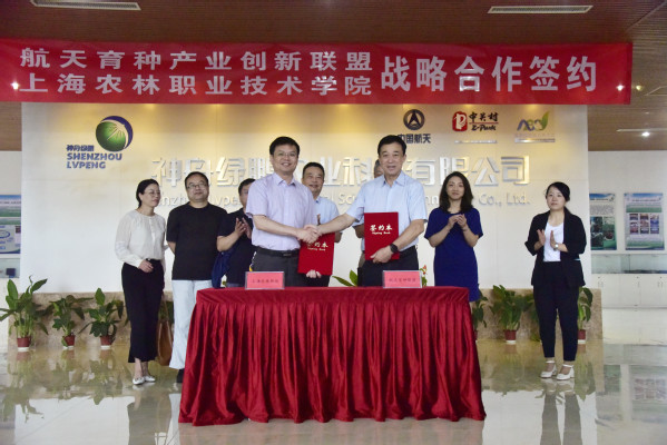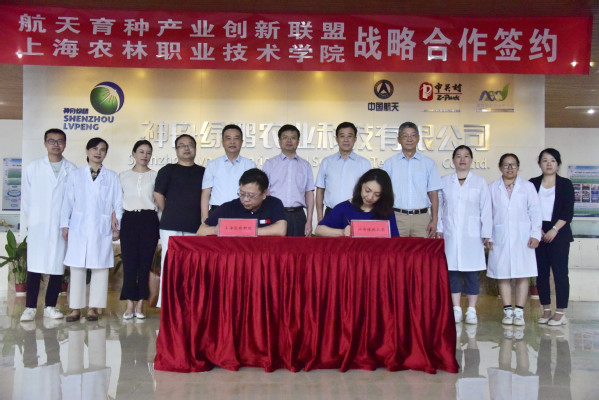 8月9日,学院与航天育种产业创新联盟战略合作协议、学院与神舟绿鹏公司草莓组培脱毒技术合作协议在航天育种核心示范基地签署。中高会党委书记、常务副理事长、航天育种联盟理事长梁小虹,中高会特聘副理事长赵辉、神舟绿鹏公司总经理李静,学院党委书记蔡红,副院长谢锦平、张江等出席。