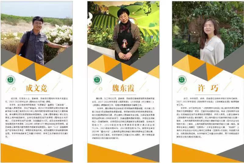 2022年度上海农林学院(上海市农业学校)知名教师简介