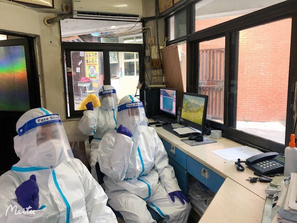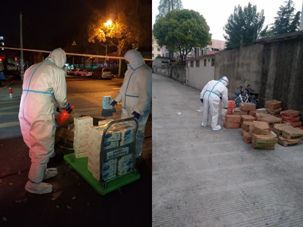 3月中旬的天气,阳光格外给力,日均气温多在20℃以上,防护服密不透风,化身“大白”的安保队员们各个汗如雨下,在防疫物资紧张的当下,他们舍不得多换,一穿就是一个班,再脱下时,身上已散发阵阵浓郁的汗臭味。由于情况紧急,队员们都没来得及准备个人生活物品,换洗衣物成了大难题,队员们平均年龄35岁,均是外省市来沪打工人员,多数无亲属在沪,衣物外来补给几乎不可能,于是,保安队长请其爱人帮忙,从队员们的居所带了一部分衣物送至学校,他们互相拼拼凑凑,熬过了头三天,到第四天开始,队员们已无衣物可穿,大白衣服便是他们的贴身衣服了,但是队员们无怨无悔,总是笑着和每一位碰面的教职员工问好。在被问及为什么不向学校求助时,受访队员哽咽了,他们说:“当时,安排检测点、发放物资……学校所有人都很忙碌,我们怎么好意思再麻烦他们呢?”在最初的几天,他们没有向学校提出一些生活物资需求,学校工会、保卫部门在得知保安的基本情况后,为其及时解决了一部分基本生活物资。
