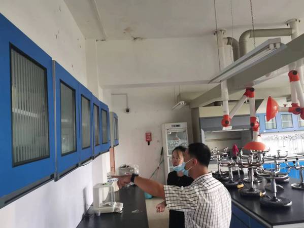 在实验室,检查组重点检查了实验试剂的管理台账、应急冲淋设备使用管理情况、压力容器等特种设备的管理、废弃试剂处置等环节。