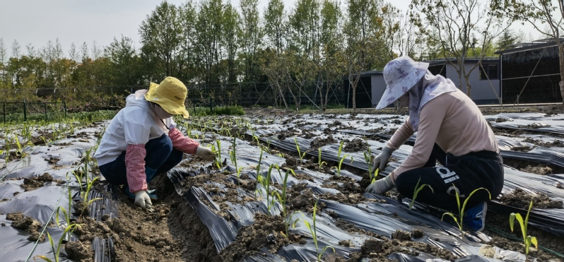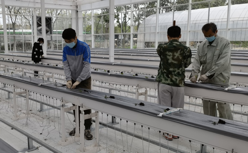 自3月12日以来,因疫情学校五厍基地实施封控管理,基地工作人员在做好疫情防控工作的同时,还要备战春耕保障实训动、植物及科研材料的正常生长。封闭管理期间,工人无法进入基地,各生产条线人手严重不足,驻扎在基地的教师、宿管、后勤等人员全部深入田间一线,投入到农业生产中。在此期间他们完成配制并装填栽培基质20立方米;定植番茄、甜瓜、黄瓜、玉米等作物1万余株;养护植科系和园林系实训植物8000余盆(株)、饲养实验动物200余头(条);以及养护管理草莓、蓝莓等重要科研实训材料,后续还需要对果蔬等作物进行田间管理和病虫害防治等工作。