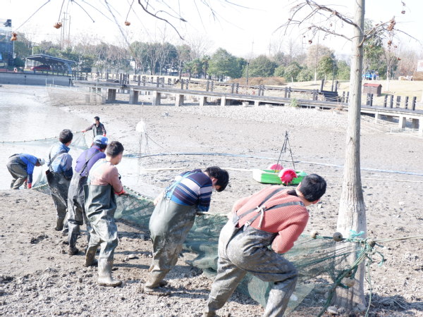 1月4日下午,实训基地全体在岗教职工参与新年首次捕鱼活动。