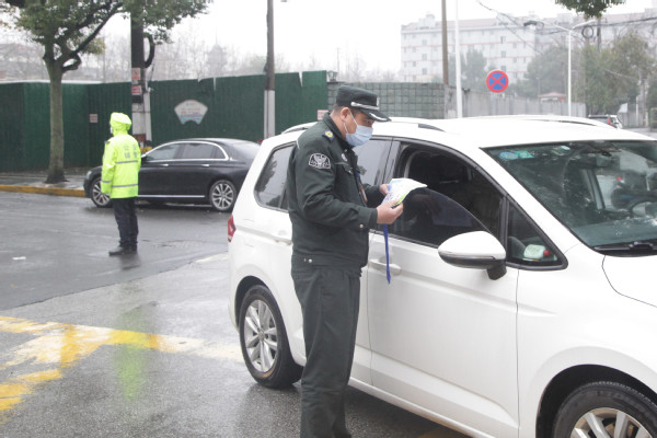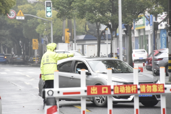 有在校门口维持秩序的辅警