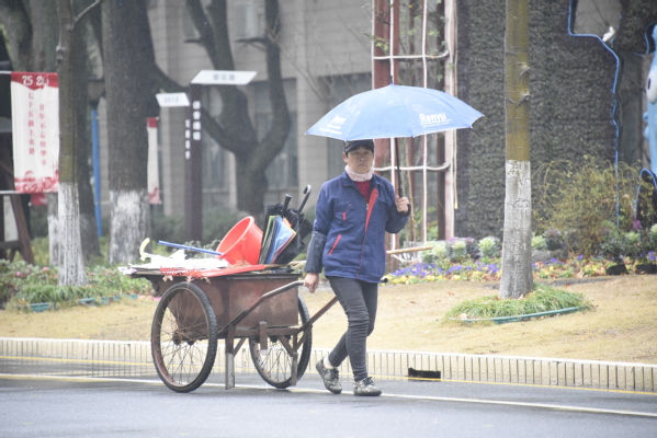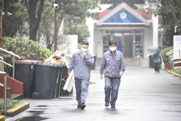 有奔赴在工作路上的清洁、维修人员