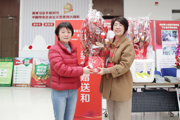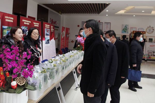 展示现场,市委宣传部副部长潘敏、市教卫工作党委副书记闵辉莅临。学院教师热情地为村民科普不同种类绿植养护方法和蔬菜水培知识点,送绿植大礼包,并把学院师生设计扦插的花卉作品赠给陈家镇。