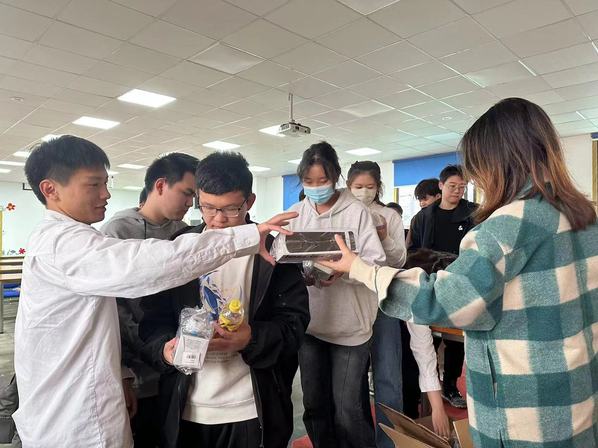随后,支部党员为同学们送上来冬日温暖慰问品。